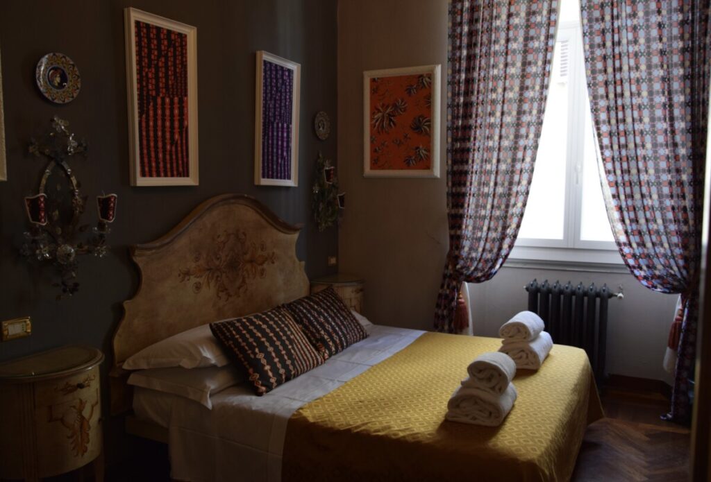La storia del mio rapporto lavorativo e di amicizia con Francesco, il proprietario, risale agli inizi del 2000, anni in cui fu realizzato l’arredamento completo delle sei camere, ispirate alle antiche decorazioni fiorentine, in pieno stile Vittorio Grifoni.