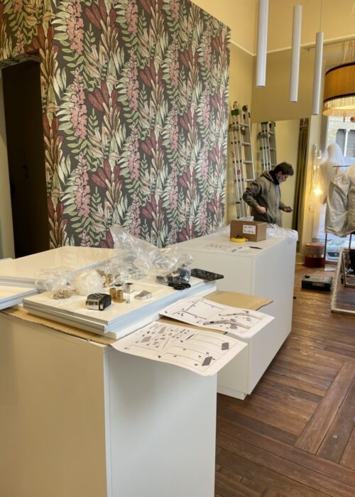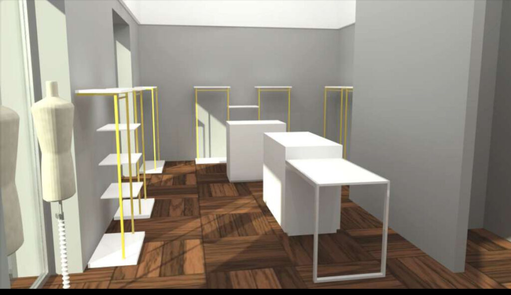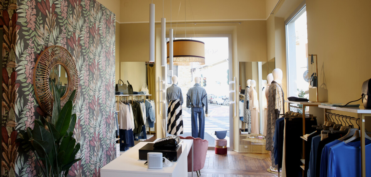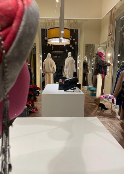 La sfida più importante era di riuscire ad aprire per le settimane prima di Natale, periodo di shopping convulso, ottimo punto di partenza per un nuova attività. Abbiamo fatto una scelta stilistica in base ai gusti di Laura sul tipo di arredo tecnico, pratico ma anche estetico da inserire in un ambiente già caratterizzato e con poche possibilità di modifica strutturale. Per adattarlo alle nuove esigenze commerciali abbiamo dovuto intervenire sull’illuminazione tecnica che però correva su un unico binario dal quale abbiamo fatto scendere sospensioni, faretti e cilindri direzionabili a seconda delle necessita dell’intero ambiente e dell’esposizione della merce.