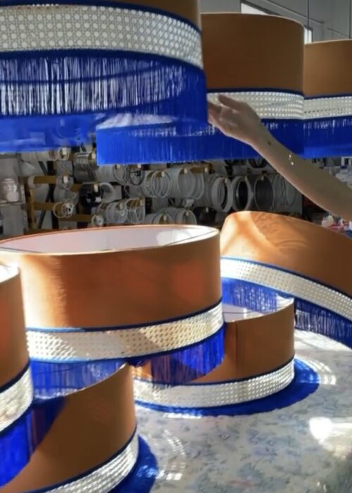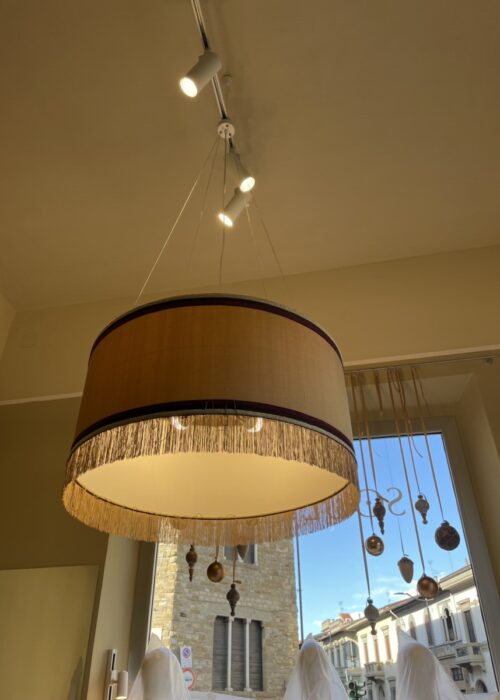 Laura desiderava però andare oltre la funzionalità e creare qualcosa di bello, così abbiamo pensato a dei paralumi volutamente molto grandi e fuori proporzione che attirassero l’attenzione dei clienti e dessero una nota frivola agli interni.